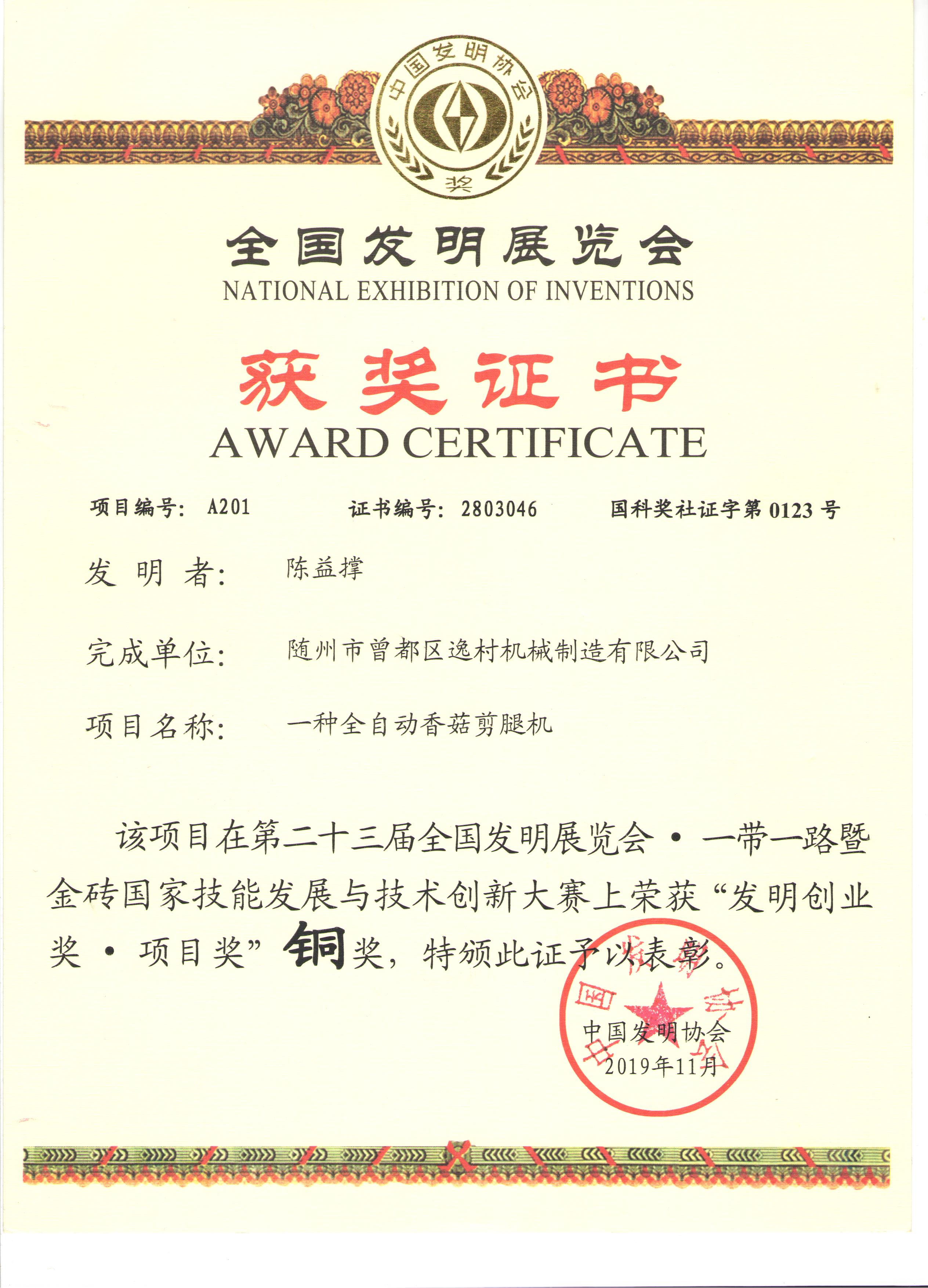 逸村食用菌扎口機(jī)榮獲國(guó)家..